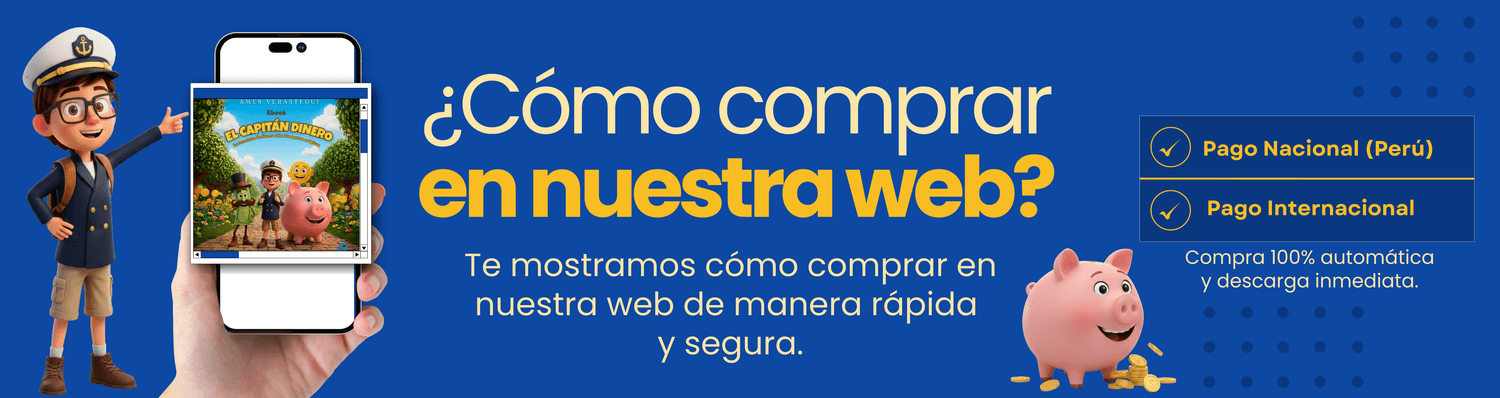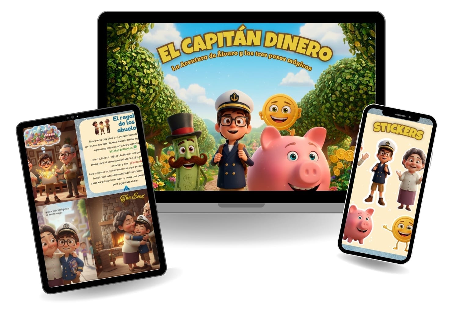 Con el paquete educativo digital “El Capitán Dinero”, tus niños aprenderán hábitos financieros, responsabilidad y toma de decisiones con una historia divertida y herramientas prácticas para toda la familia.
