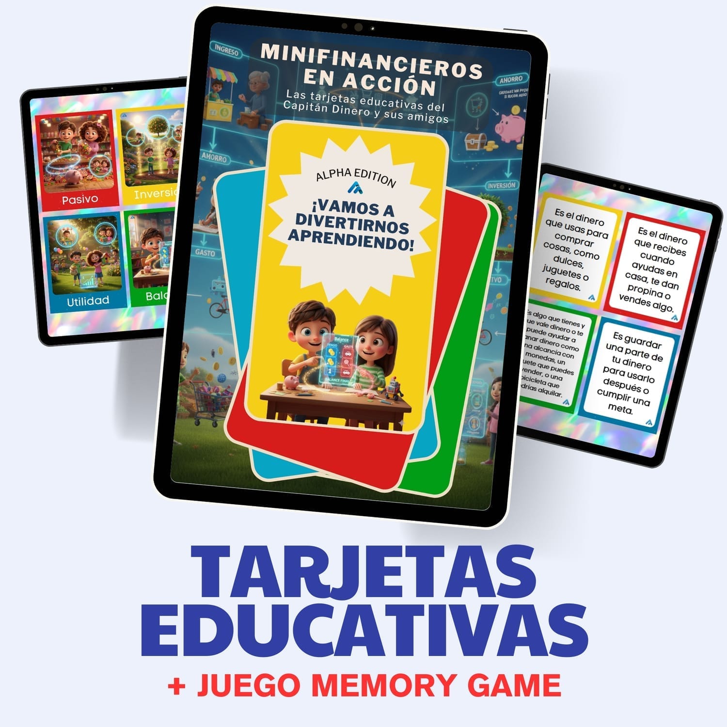 18 tarjetas educativas llenas de color, emoción y enseñanzas financieras.